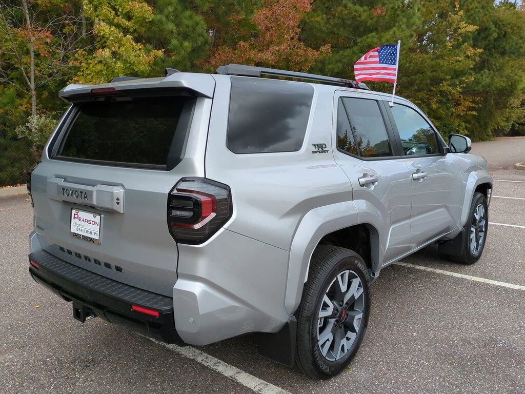 - Gloss-black honeycomb-style grille; color-keyed mirror caps, door handles, overfenders, and rear spoiler; black "trd sport" and "4runner" badges.